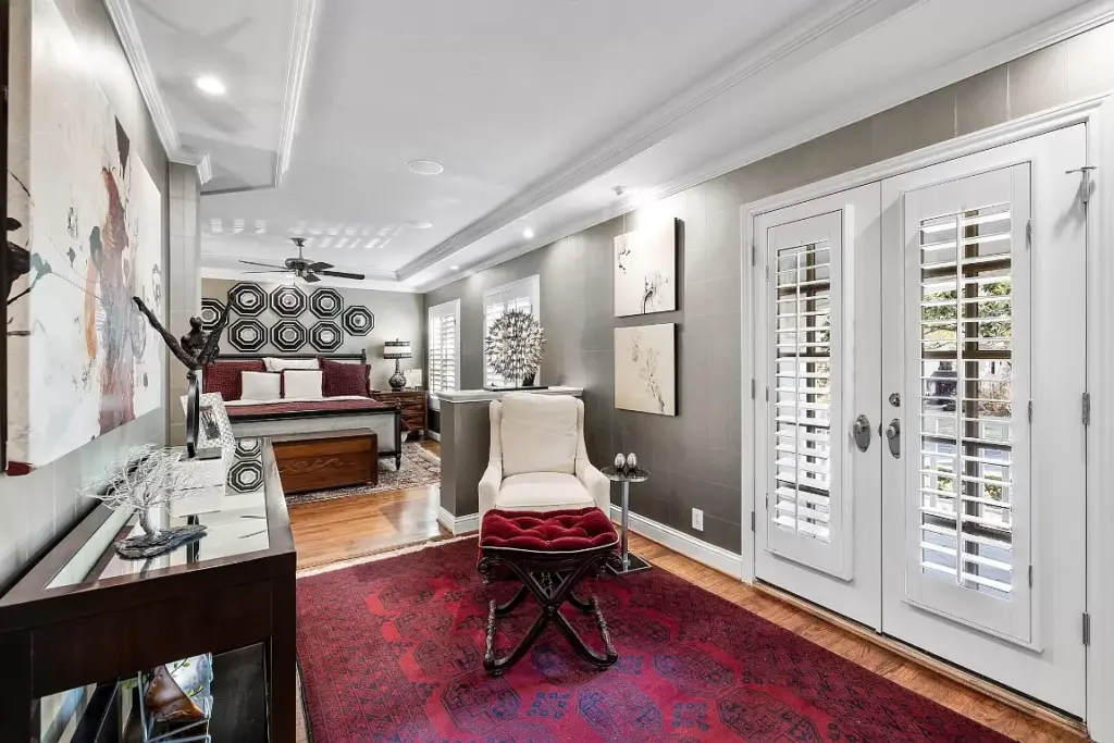 The primary suite is just as luxurious as you might expect. It features its own outdoor access and sitting area. The privacy factor is unparalleled. Also, dual closets allow for owners to organize their wardrobes easily and efficiently.