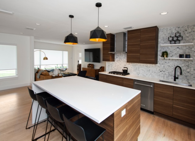 Your best bet: Insulated or blackout curtains that have a dense weave and high thread count or a synthetic thermal backing. And redesigned for 2022, Hunter Douglas’ PowerView® Automation lets you program window treatments for optimal efficiency, privacy, and security.
