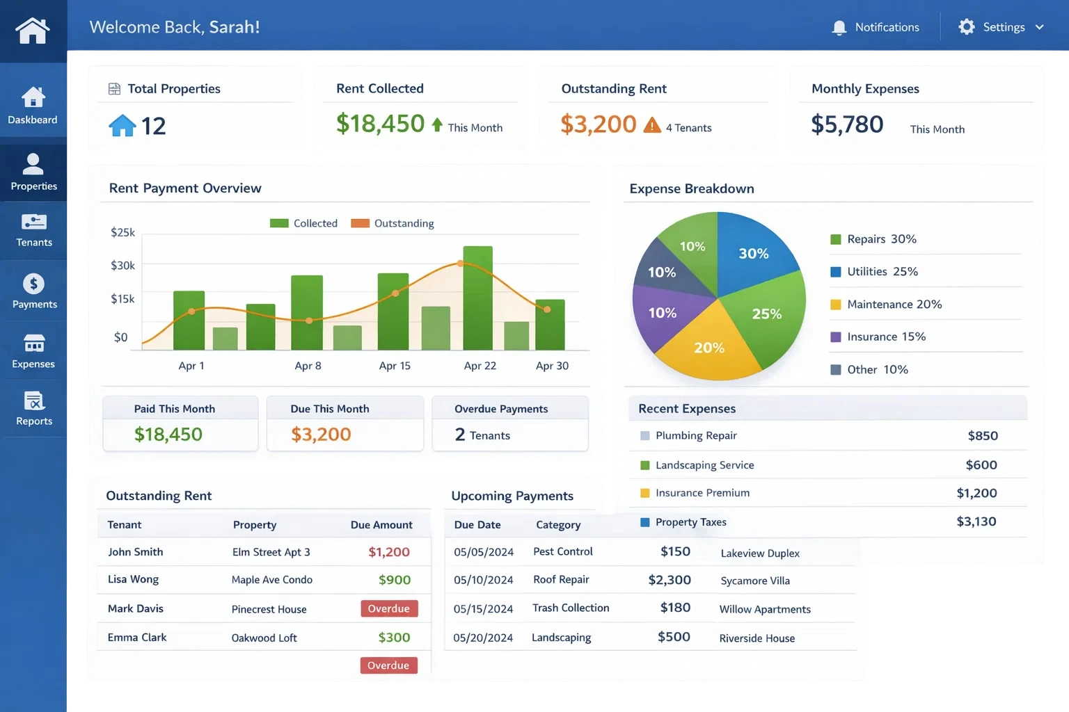Many owners run into cash flow problems for simple reasons: a payment gets missed, a repair cost doesn’t get recorded, or bills land in different places (bank app, emails, paper receipts, spreadsheets). Property management software helps by keeping rent payments, expenses, and reports in one spot so you’re not trying to piece everything together later.