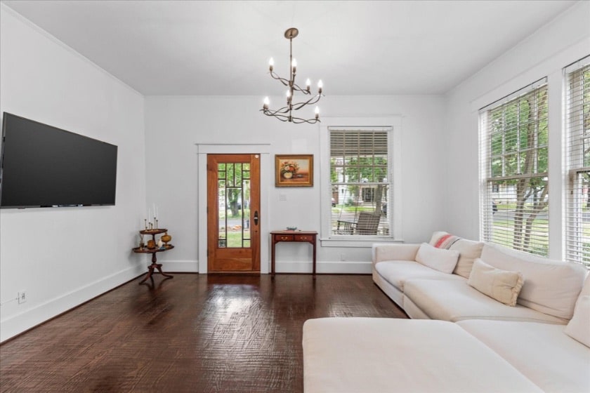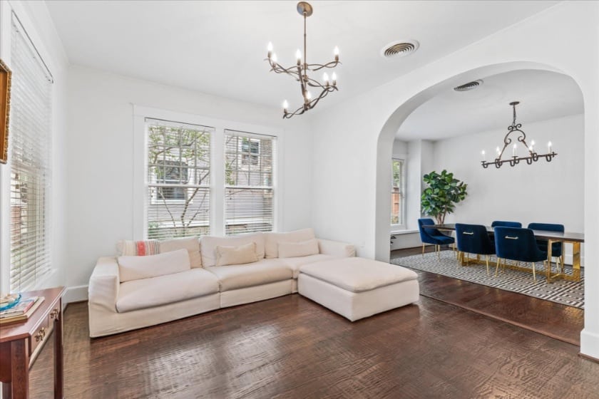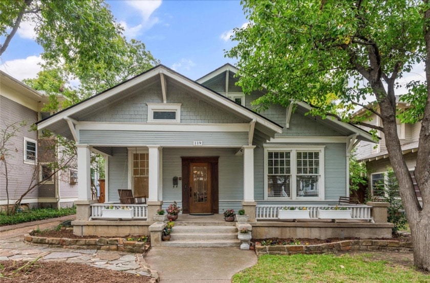 This Oak Cliff home is so cute and welcoming, sheeeee’s a real charmer. I mean, right off the bat, a quick flip reveals amazing interiors! Like where did they find so much space? That was my first thought. Followed by, holy cow, this home is 2,634 square feet! In my mind anything at or around 2,400 square feet is ideal and this one is nailing it. But I’m getting ahead of myself. Let’s start at the porch.