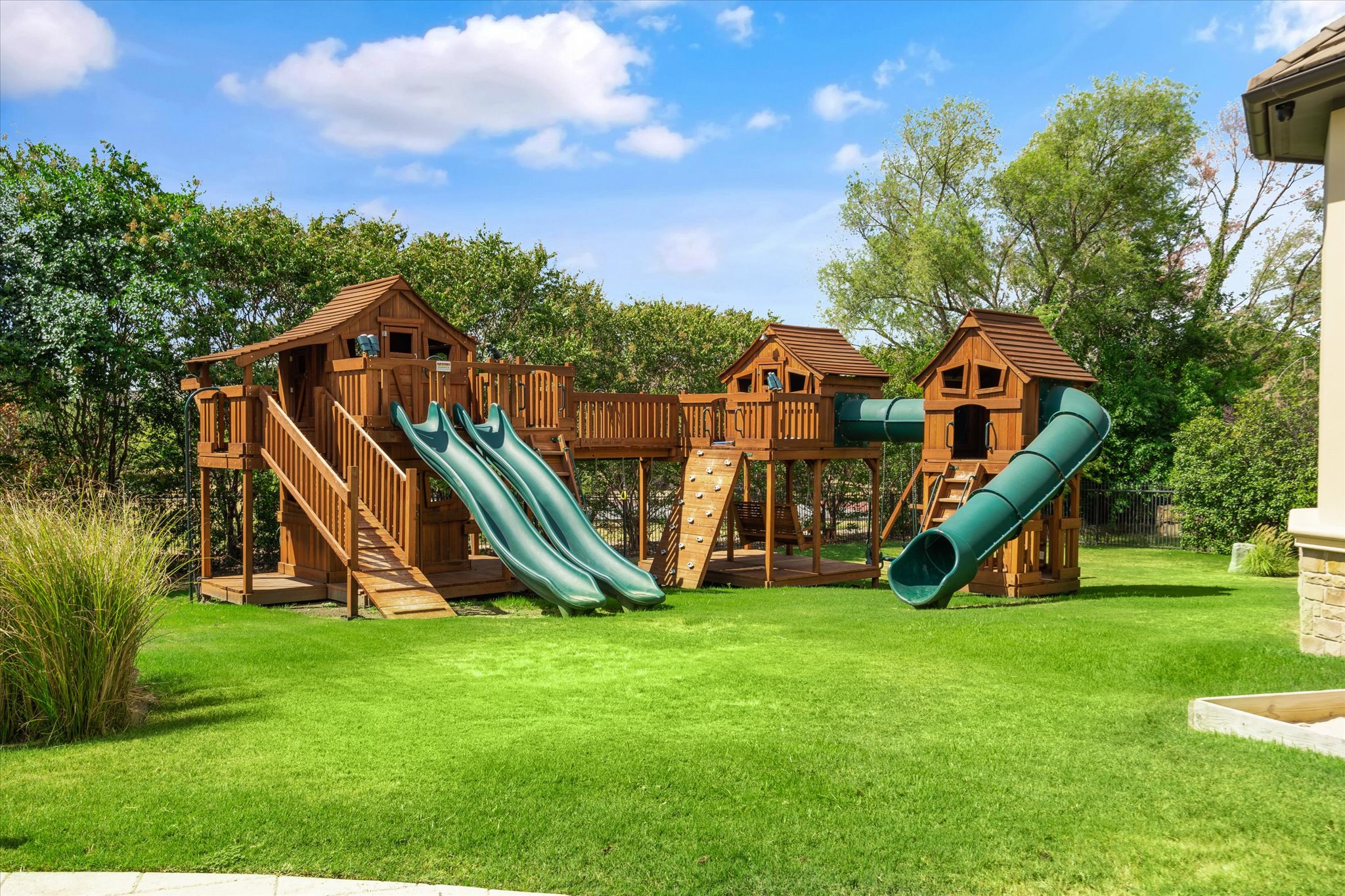 Outdoor kitchen? Of course. Fireplace, too? Clearly. A basketball court? Sure.