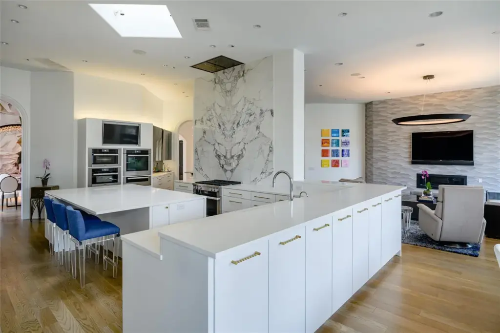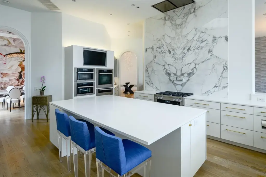 In the kitchen, you’ll find things you expect along with things you didn’t know you needed. Tremendous storage, Thermador, Miele, and KitchenAid appliances, hidden lift stands, vent hoods with remotes … surely even boiling an egg will feel indulgent and satisfying in this culinary playland.