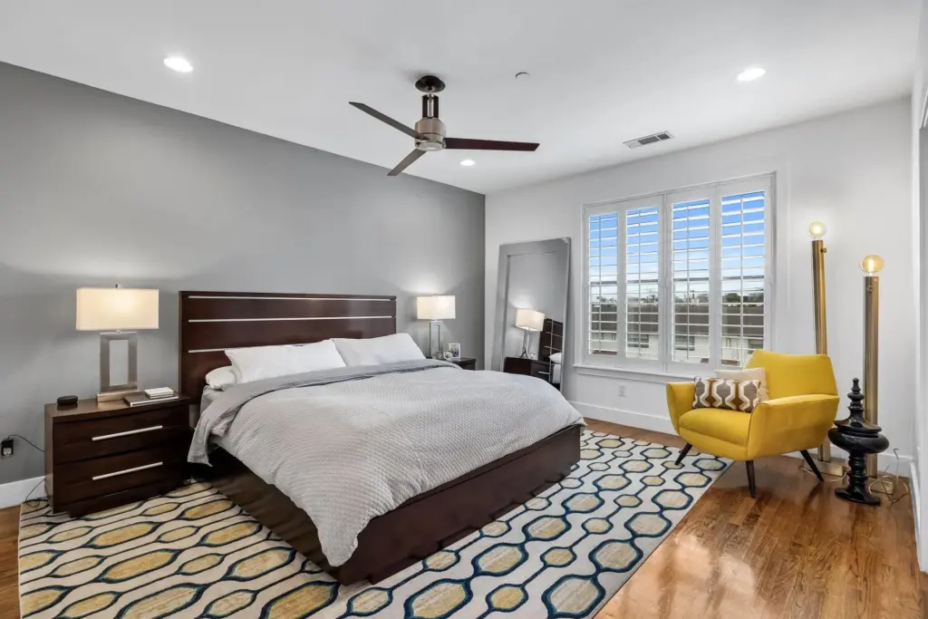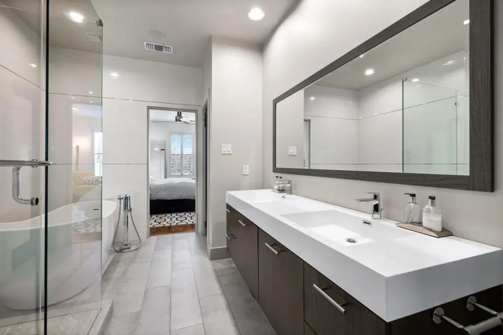 “The primary bathroom was taken to the studs and has floor-to-ceiling tile,” Murrell said. “The floor plan was also re-designed to accommodate and add entrances from the upstairs den to the primary, which really makes the entire third floor feel like a true suite.”