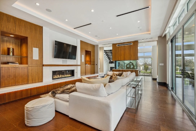 The 7,012-square-foot, five-bedroom, four-bathroom home sits on 1.39 acres, with an additional 1.5 acres also available in the coveted Dallas private school corridor. If you are wondering, the ceilings in the central part of this majestic modern are 24 feet high, so if you have any basketball clients that need some head space, this is the perfect home!