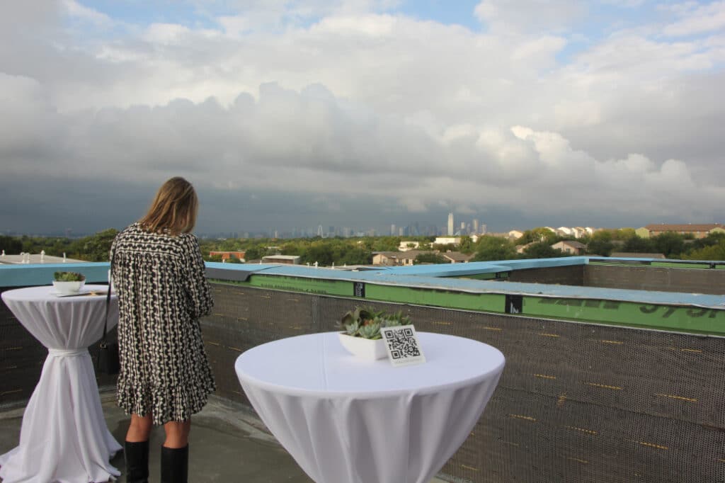This exclusive gathering hosted by daltxrealestate.com and Kessler West provided attendees with a striking vista of the Downtown Dallas skyline as guests sipped bubbly beverages and enjoyed conversation atop the spacious rooftop deck. While we were spared the rainfall there at the corner of Oak Cliff Blvd. and Davis, guests got a timelapse view of the skyline wrapped in rain and clouds like they’ve likely never seen before.