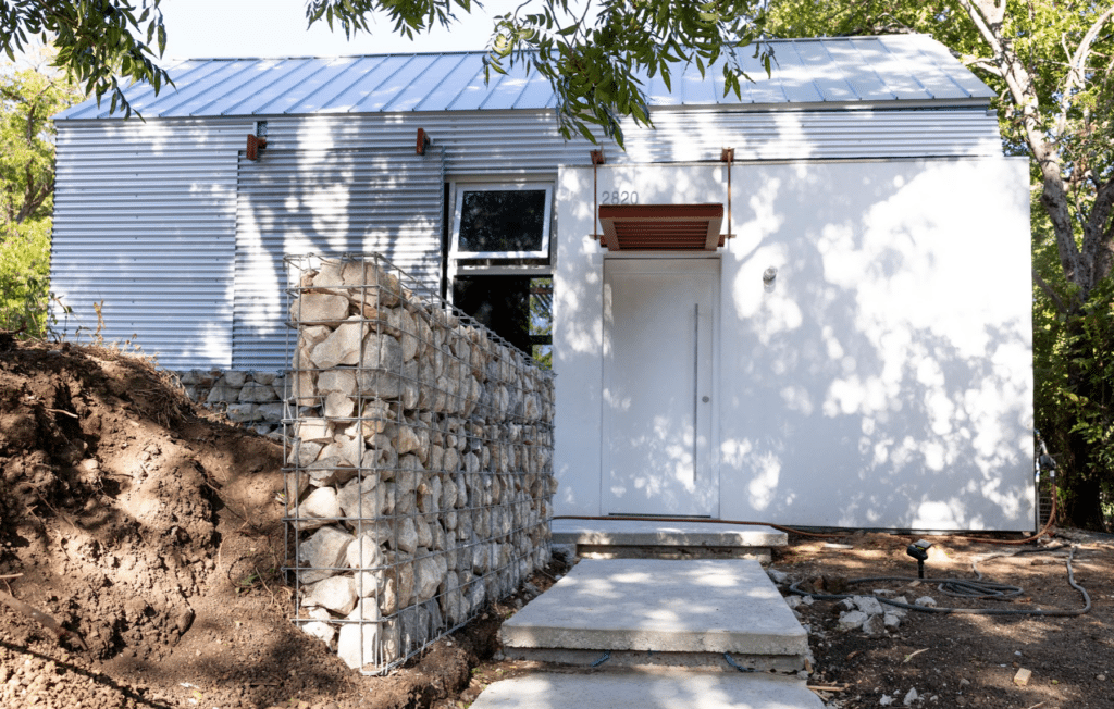 Definitely the odd one out, the Westhoff-Moore house is the bold conception of owner architect Jeff Westhoff who seems to be enjoying the dialogue and controversy his construction is provoking. He’s heard it called a storage unit, dog kennel, and even prison — all of which seems to have provoked mirth in the owner. Through it all he has adhered to his strict vision, which was to build a small, 1,400-square-foot residence with a low carbon footprint where structure and landscape are in harmony. Materials feature stone, steel, and concrete blocks. This is one I can’t wait to check out.