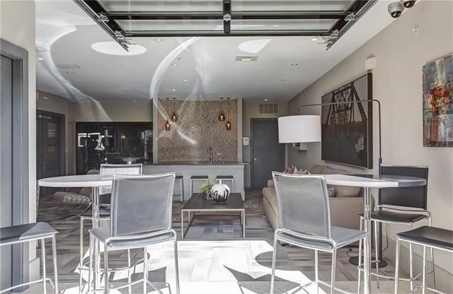 The building has touches by Cheryl Ketner Interiors, like in the owners’ lounge with contemporary furniture, a kitchenette, and flat screen TVs. The unit features premium upgrades, like stainless appliances, wool carpeting, and large walk-in closets. It features the “Le Mans” color palette of this unit: white crystal quartz counters; dove gray cabinets; and an array of soft, light grays and creams creating a soft, welcoming feel.