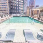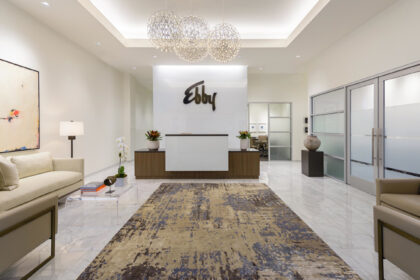 Head to the well-appointed kitchen to find a built-in, double-door wine and beverage fridge, sleek granite countertops, stainless-steel appliances, and white custom cabinets – some with lovely glass fronts. Gorgeous stone floors and eat-in area add to the charm and make for a beautiful functional space to cook and serve a meal.