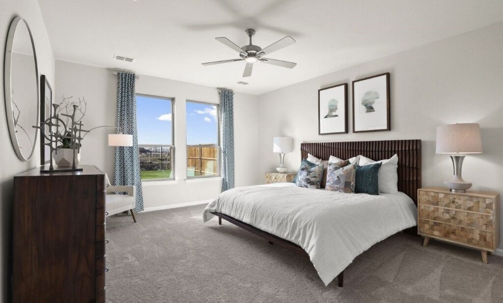 The large master suite has an ensuite bathroom perfect for getting organized.