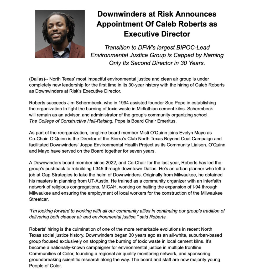 Downwinders at Risk was formed in 1994 to fight Midlothian cement plants. Since then the nonprofit has done tremendous work advocating against southern Dallas batch plants and illegal dumping at Shingle Mountain. You better believe they have been at the forefront as Dallas planners have reviewed industrial uses in an update of the city’s ForwardDallas comprehensive land use plan.