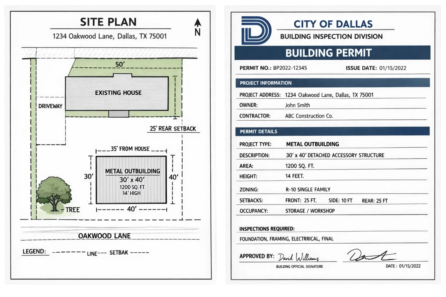 Permitting requirements for metal outbuildings vary significantly across the DFW metroplex. Here’s what property owners need to know before ordering.