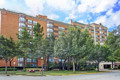 All three bedroom are good sized and both bathrooms feature sleek floating vanities. In the master, it is a light-colored wood, sitting near the glass walk-in shower. In the secondary bathroom, it is a rich espresso-colored wood and the bathtub-shower has a white subway tile treatment.