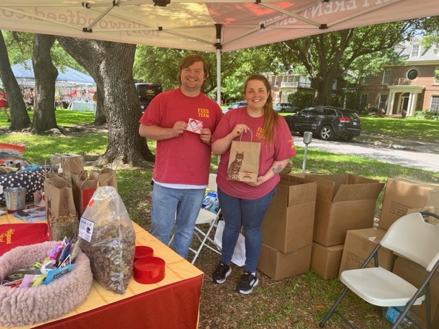 Hollywood Feed store managers Kenneth Pierson from Shreveport, La., and Shea Thompson from the local Lakewood shop, said they loved being in the midst of the excitement as they handed out gift bags of dog treats.