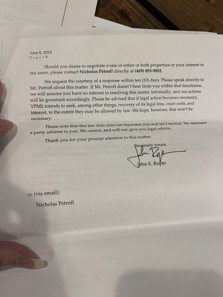 “I can confidently say that I’m the problem-solver you’re looking for,” Petroff says on the site. “When you’re facing little issues that put your project on hold or keep you from profits, my team and I have you covered. Property disputes, heir disputes, and even obstructive liens are a hassle that nobody wants to deal with. But I’m ready to take it off your hands and give you a simple solution to a complicated dilemma.”