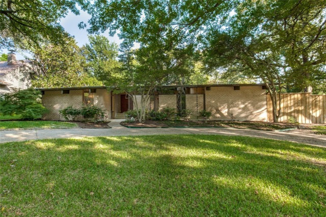 It features more than 10,000 square feet in the gated Preston Hollow neighborhood. The unique, contemporary style boasts rooftop decks, patios, a swimming pool, greenery, and an open floor plan on more than half an acre.