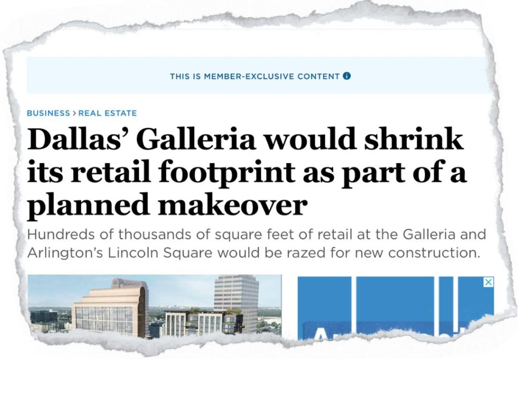 In the article’s following paragraphs, the News cited financial woes at the now-defunct Vista Ridge mall in Arlington and others as examples of the struggles brick-and-mortar shopping centers have been battling for years.