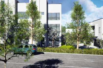 Inside, you’ll enjoy three floors of low-maintenance living packed with modern design. This includes a quartz custom kitchen with upscale appliances, custom cabinetry, a pantry, and an open airy feel that is ideal for entertaining.