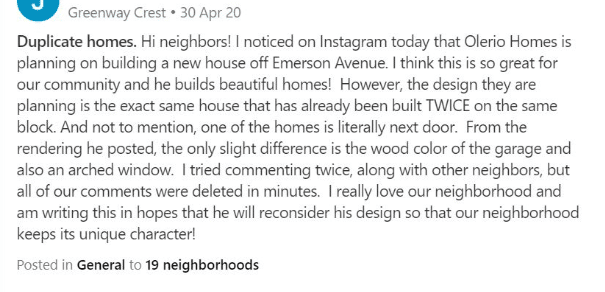 Although some of these Nextdoor posts are a couple of years old, they display a disdain for cookie-cutter houses.