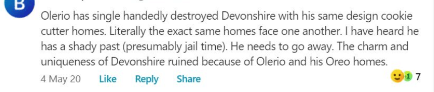 Residents have shared stories about Olerio on Nextdoor that don’t paint a great picture of the developer.