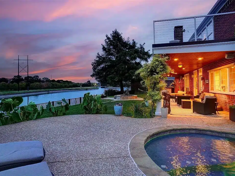 Buy this house for a wonderful place to sit around and discuss the Ranger’s batting order or maybe the team’s bullpen. Its outdoor living areas are so inviting that the baseball discussions might never end. Choose from the 60-foot covered patio, the balcony, or the fire pit for the best place to discuss sports or enjoy the sunsets. Water features? There’s both a beautifully landscaped pool and a canal to enjoy.