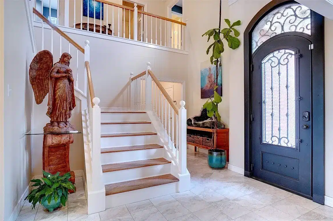 The impressive iron front door opens to a two-story entryway. The 4,300-square-foot house includes a formal dining room and living area for entertaining before or after any major league ball game. The updated kitchen offers two pantries — perfect for storing all the Cracker Jack — plus great views of the backyard canal.