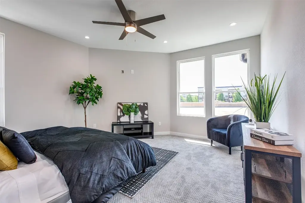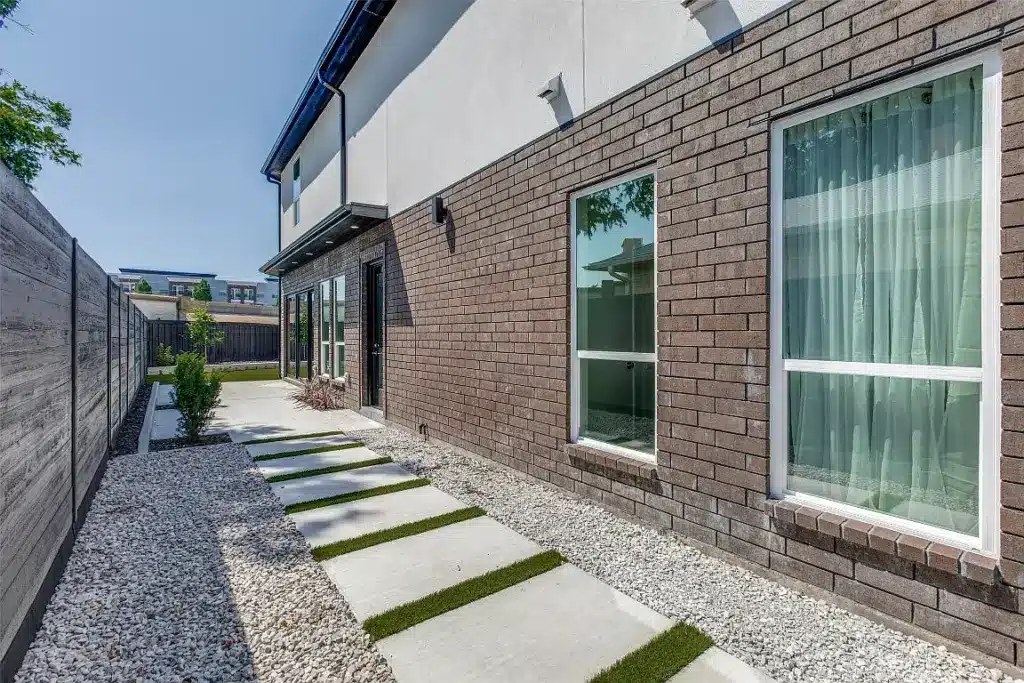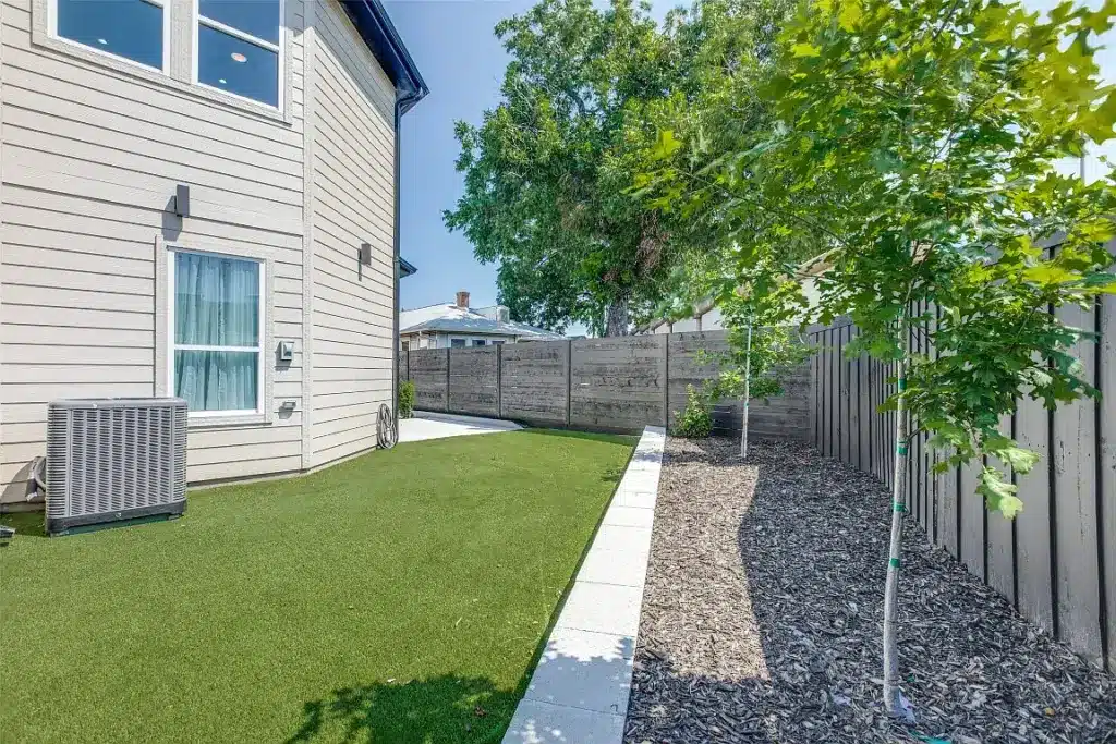 As you step through the inviting side courtyard, you kind of forget all the activity on that side of the fence. This is this side of the fence and it’s your private little sanctuary. The low-maintenance courtyard is adorned with artificial turf and has ample patio space to create some very cool outdoor living vignettes. We’re talking market umbrellas, outdoor living rooms, bistro dining sets, and outdoor rugs. Go ahead and plan your trip to IKEA and Home Goods now because this place is move-in ready.