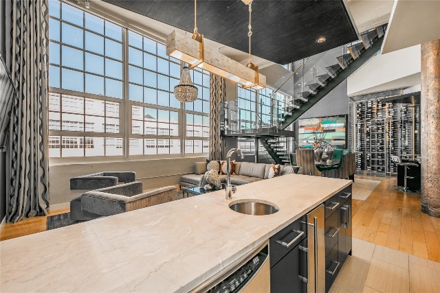 If you dig the rich texture of 1980s-era homes (I do!), you’ll love this one with its earth-tone tiled floors, mixed brick fireplace, and a wet bar. Think a bar looks outdated with saloon doors? Actually, nowadays they’re called cafe swing doors and they’re a pretty useful feature when you think about it. Beverage in one hand, sandwich in the other — problem solved.