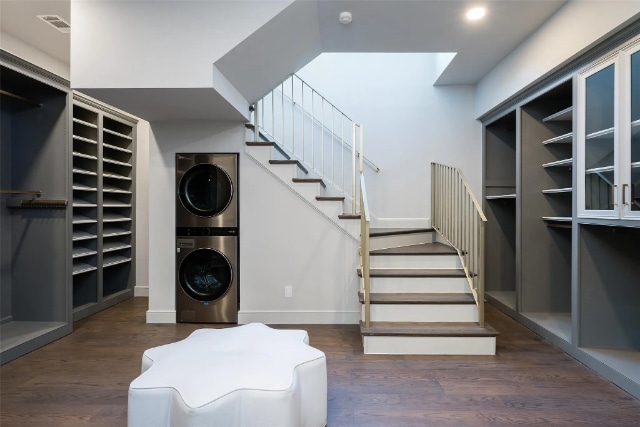 “The two-story principal closet was confusing,” Streiff said. “We reevaluated the space and added a wall and a door upstairs, allowing for a second home office space. It was transformative and now makes sense. We also added a secret door in the bookshelf to make more sense of the au pair suite.”