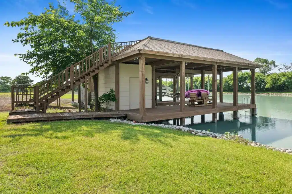 This is lake house convenience like never before. Imagine spending an entire day out on the lake. Even though the water is currently averaging 85 degrees in this Texas heat, it’s still hot, right? You’re in water, but still it’s that unshakable Texas heat. All you want is the convenience of a big home with multiple AC units near your boat dock. We call it walking from the shore to your door. It’s a killer combo, and that is what 623 Calm Water Cove offers you in Princeton Lakes.