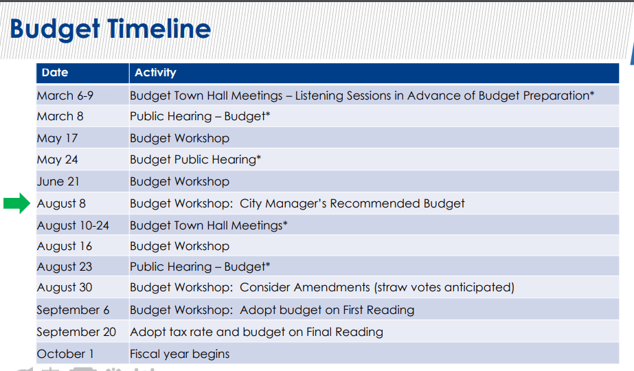 The next budget workshop is scheduled Aug. 16.