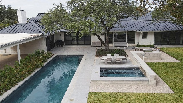 And of course, the outside of the home is just as beautiful. Santa could lose all his holiday heft by doing some laps in the pool while Buddy the Elf fills up the spa with bubbles.