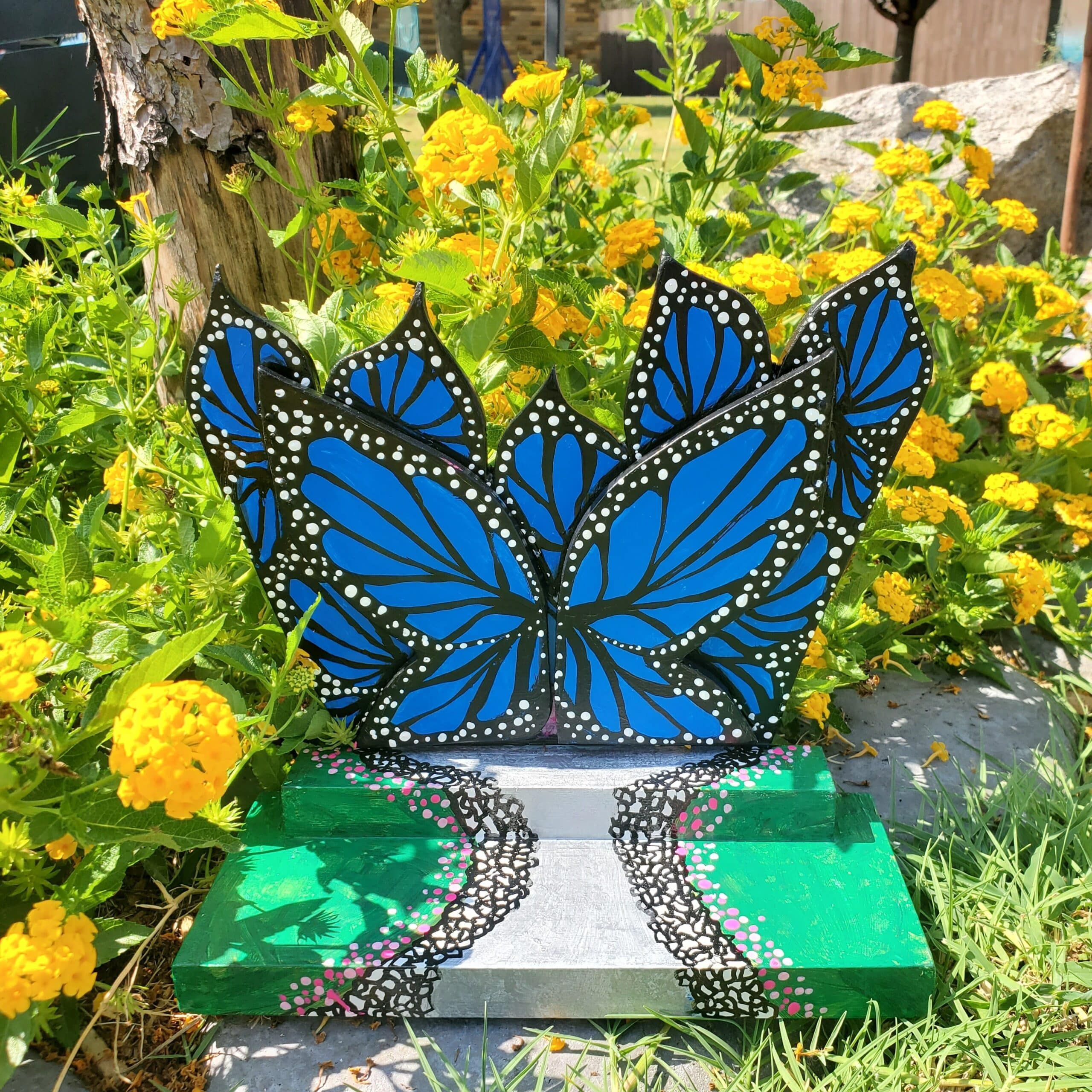 For Kerby’s McKinney Tiny Doors installation, Juju created a colorful, butterfly-inspired entrance.