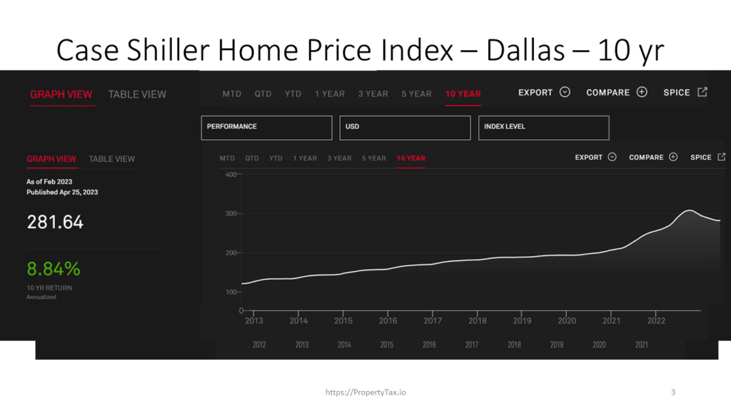 “It’s obvious here that over the last 10 years that there’s been a steady increase. You see a heavy increase there in 2021. And we all know why — limited supply and low interest rates. Especially in Texas, where we saw the job economy thriving, so it was just a case of limited supply. You had a lot of people moving here and that drove up prices, and we still see effects.