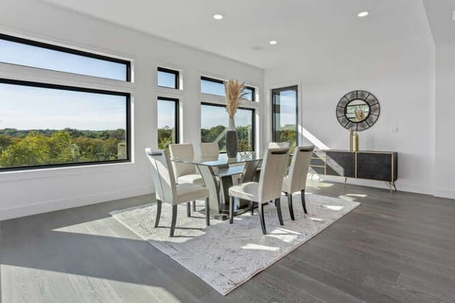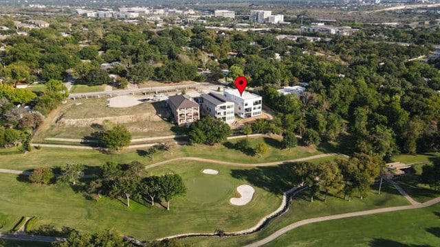From the street, the middle level would be considered the main level of this home. As we’ve mentioned (and we’ll expound more later) this home is literally built into a hillside thus allowing for a full walk-out basement. The middle level features a private study off the entryway and an open living, eating area, and a gourmet kitchen. And of course, this level has plenty of windows and balconies to experience the captivating views of Ridglea Golf Course and beyond.