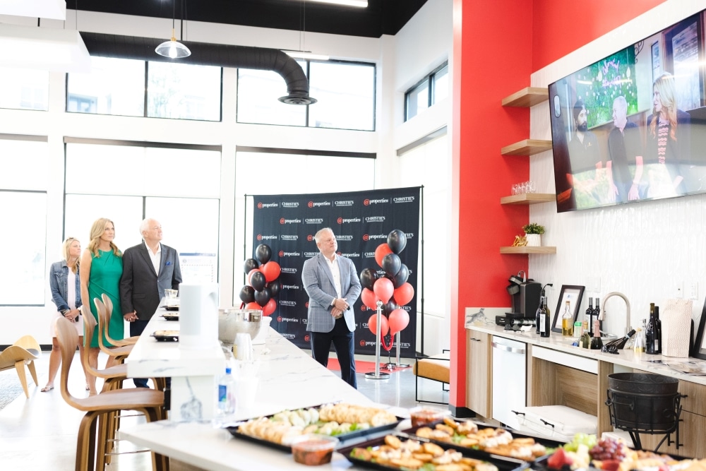 The @properties team gathered with friends and agents Thursday night to celebrate Rosa Collins’s debut for The American Dream TV. Shown above from left, Rosa Collins with Kathleen Hays of Town Square Mortgage; the @properties Frisco and Dallas teams. Shown below from left, Dan Collins of @properties Land and Ranch division, Rosa Collins, and @properties CEO and Principal Jerry Mooty; daltxrealestate.com Founder and Publisher Candy Evans, Mr. Turbo the dog, and @properties agent Heidi Frederick.