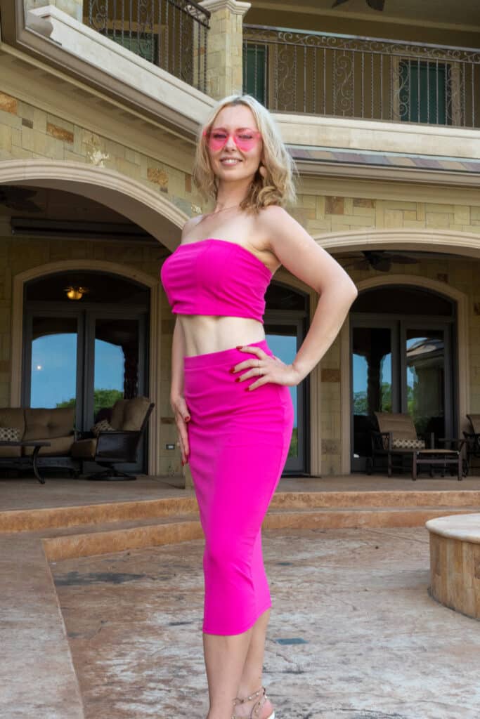 Vendors were scattered around, found in bedrooms, and living spaces offering more pink attire, more flashy bling and even services a Barbie or Ken might need to maintain the lifestyle. Guests could check out new wardrobe essentials — with more than enough pink — to polishing that Barbie Dreamhouse’s stainless steel. Nikko Blu Boutique, Beverly Hills Rejuvenation Center Southlake, Stainless Refinishing, Makeup Junkie Bags, and D-Flawless Concierge Jewelers were among the businesses chatting up the parade of people in pink.
