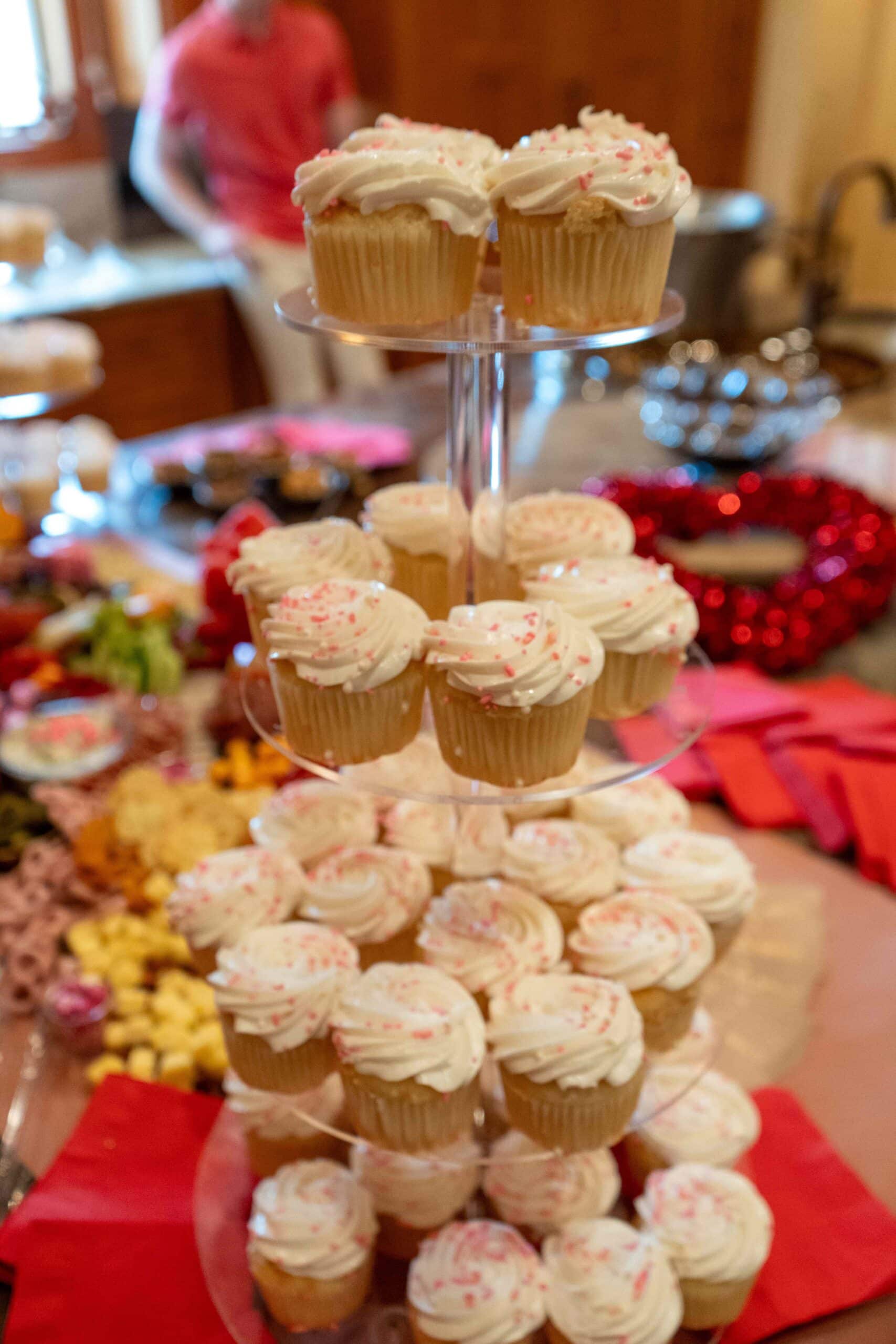 Bellinis were found in the kitchen, along with pink-frosted cupcakes. The charcuterie board was filled with lots of deliciousness, including M&Ms — all shades of pink, of course.