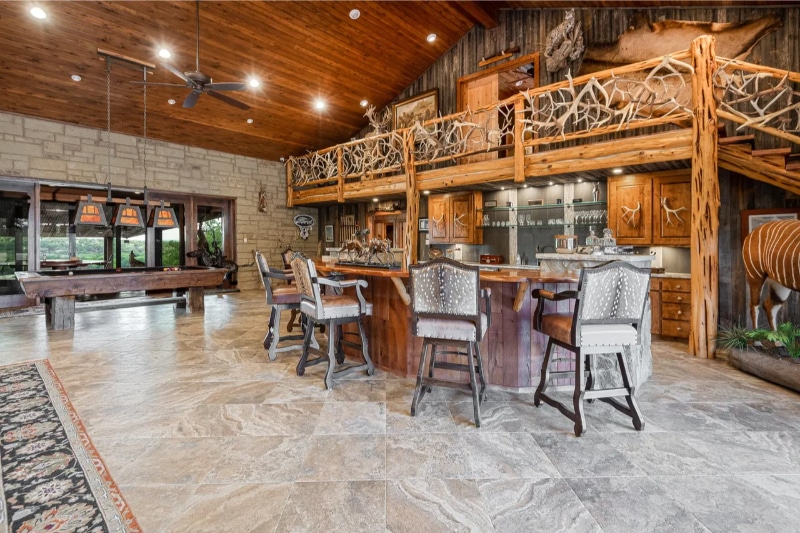 This spread is a 3,304+/- acre oasis in the famed Texas Hill Country. In legendary Lampasas County, it offers majestic views, extensive lodging options, roads, high fencing, live water, a long-range shooting tower, and various barns and shops. The wildlife varies from hog, dove, and world-class white-tailed deer to rare and exotic species that include sable, greater kudu, Grevy’s zebra, and one of the few established Cape buffalo herds on a private ranch in the United States. As its name suggests, the ranch has nearly 2.5 miles of Colorado River frontage. The main lodge is a 10,000+/- square foot beauty with multiple gathering areas, a full bar, a gaming room, and a commercial kitchen. A smaller lodge is a stone’s throw away. This luxury ranch is a wildlife enthusiast’s dream.