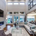 The Midcentury Ranch was built in 1966, and has high-end finishes throughout the home, including engineered wood floors. The kitchen’s spruce-up came with granite, white custom cabinetry, stainless steel appliances, and is open to the family room, which is anchored by a brick fireplace.