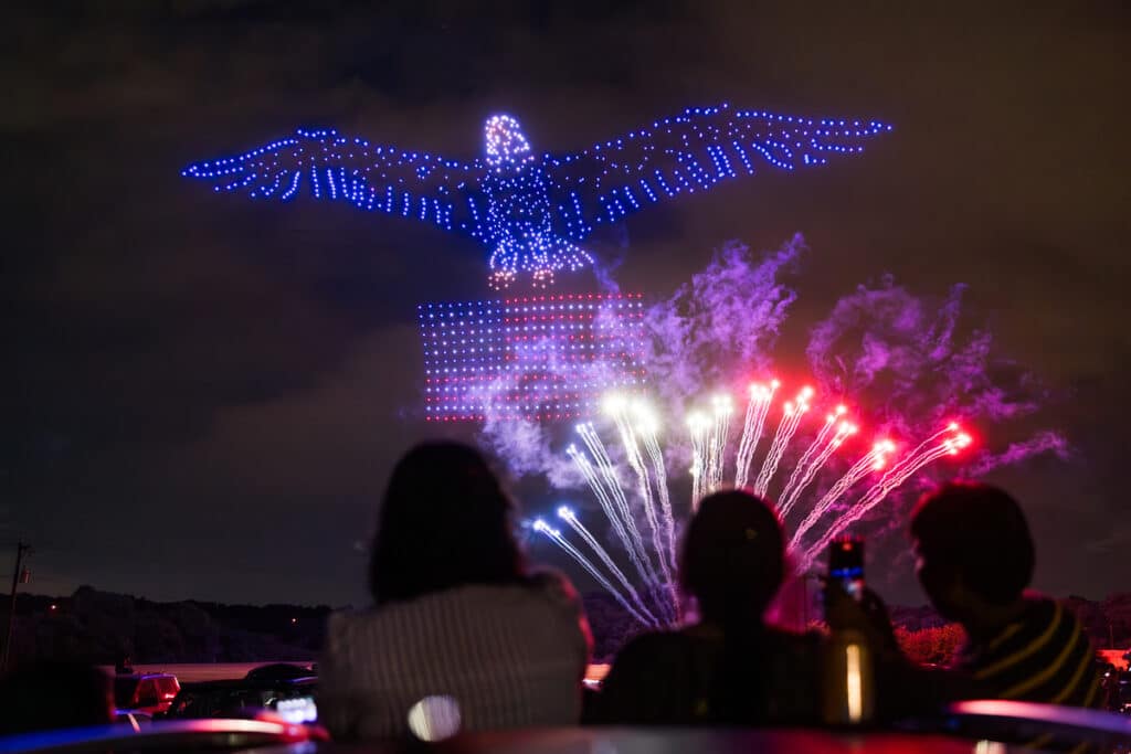 The award-grabbing sentence? “Happy 4th of July 2023” spelled out with drones flying over Birdville ISD Plaza in North Richland Hills. With 796 drones used to display the greeting, the old record of 673 was surpassed.