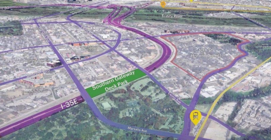 “Spanning I-35 East between Ewing and Marsalis avenues, the future five-acre bridge park will reconnect historic Oak Cliff and ignite environmental, economic, and community revitalization,” the site states.