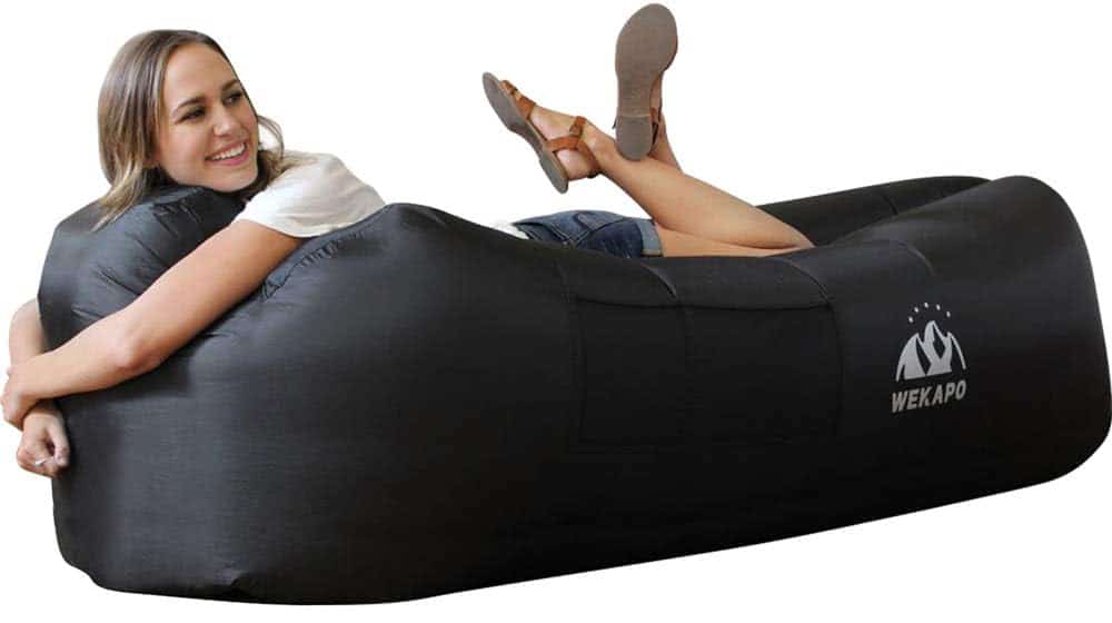 Wekapo inflatable lounger. Perfect for relaxing or reading on the quad. And when deflated, it takes up zero space.