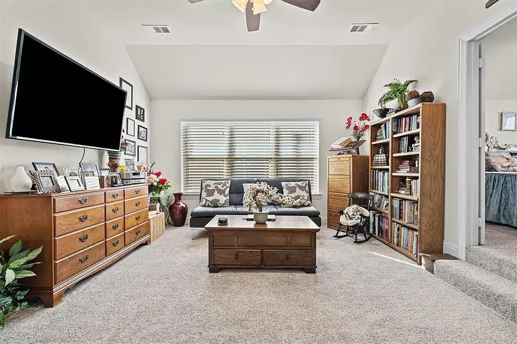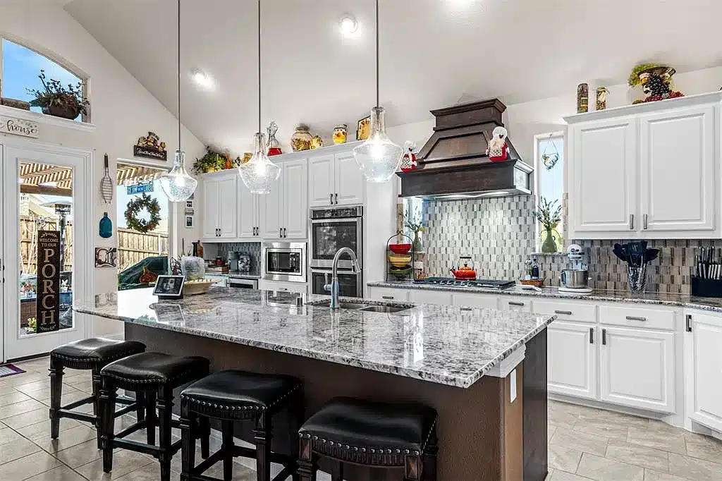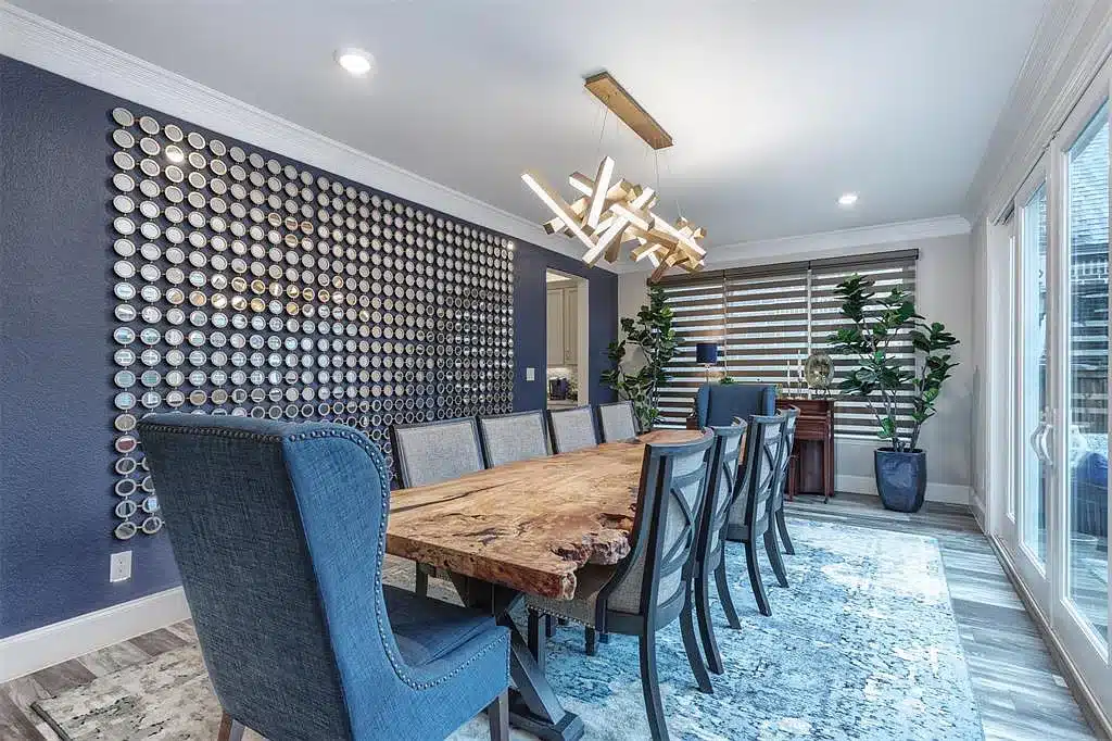“This is a beautiful home in one of the best communities in North Texas,” says listing agent Katherine Meyers. “One thing I love about The Tribute is that it has over 13 miles of trails for hiking and biking. This home is situated right on the pond so the privacy and serenity residents will experience is really a selling point. This home also features an in-law suite upstairs for those with guests or extended families.”