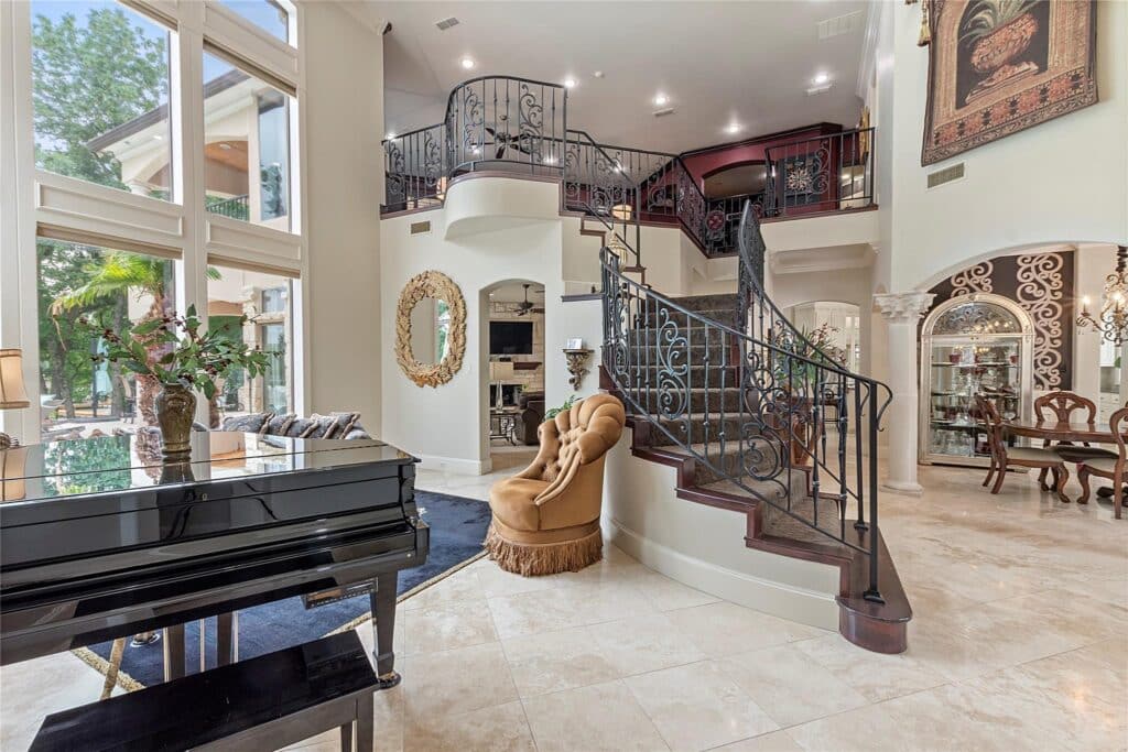 Prepare to be wowed by the primary suite. It’s got a fireplace and a view that will leave you breathless — overlooking the pool and the lake. There’s even an extra room right next door that can be your workout space, creative corner, or just a chill spot to escape to. If the need arises, you could even use it as a spare bedroom.