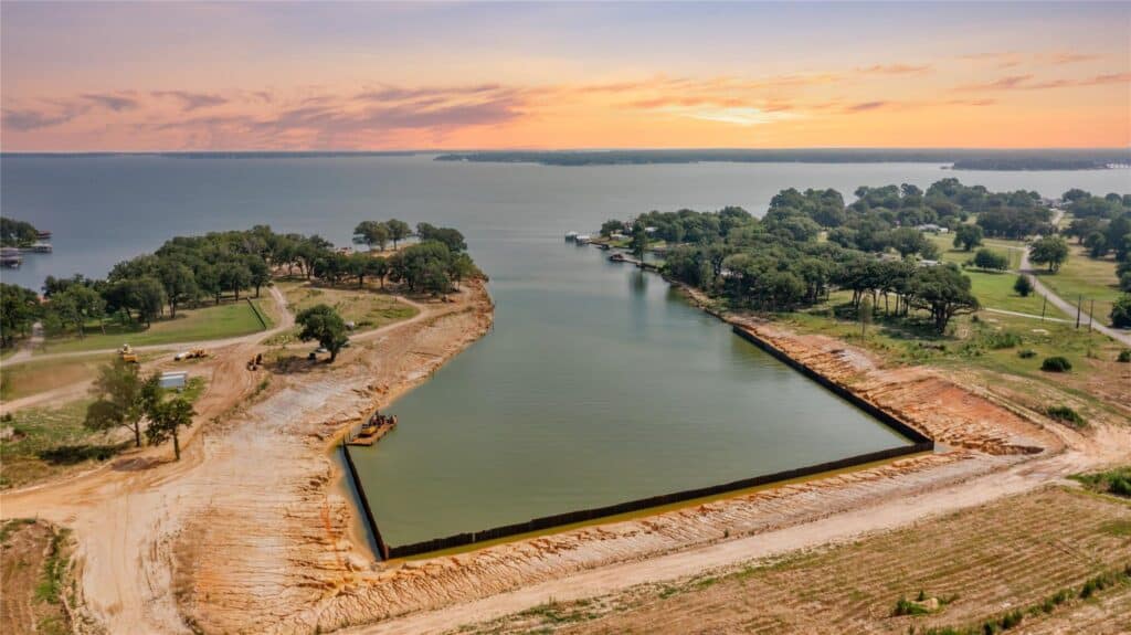 One of two upcoming residences being built at The Groves at Cedar Creek Lake, a newly-developed, 23-acre gated, luxury waterfront community, is now underway. Positioned on an enviable lot with approximately 135 feet of waterfront access, it will include a 1,000-square-foot boathouse.
