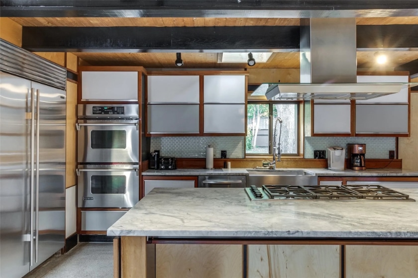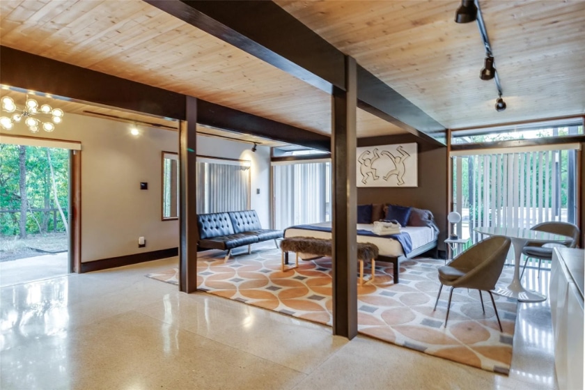 So you can see why it’s quite a big deal for one of these Midcentury Moderns to hit the market. We have it on good authority that this home was built by the owner for his family in 1964 on just over an acre. Dixon Branch Creek runs down two sides of the property, making it incredibly private.