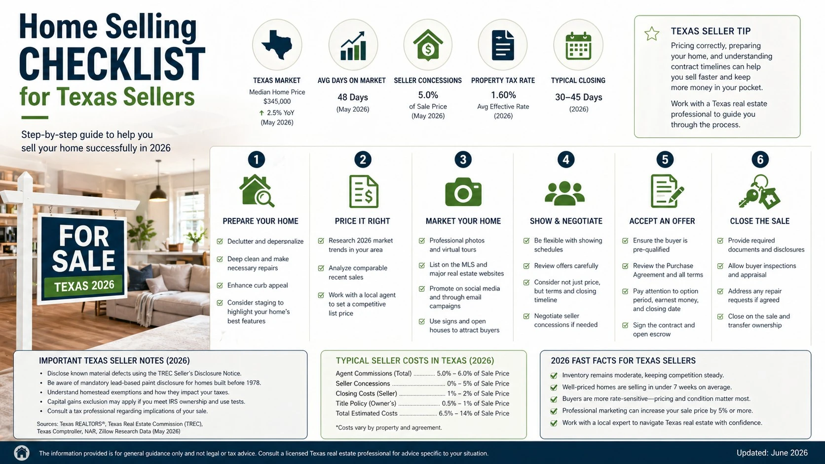 Selling a home in Texas starts with understanding the real estate contract.. This agreement includes the price, deadlines, contingencies, and closing details.. A residential real estate transaction in Texas often takes about 30 to 60 days after the contract is signed, but the timeline can vary based on financing, inspections, title work, and the terms both sides agree to. Real estate laws update frequently, so staying familiar with the current rules helps you avoid delays.