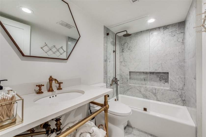 What’s the deal here? Well, the owner didn’t think she was going anywhere so she set out to update in 2019 and went all-in. We’re talking solid white oak hardwoods throughout, marble floors in the bathrooms, and a dang Bertazzoni induction range in the kitchen.