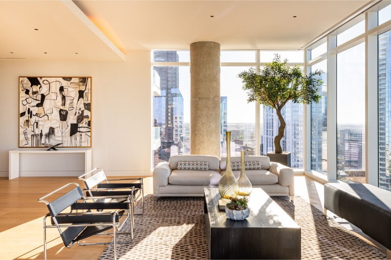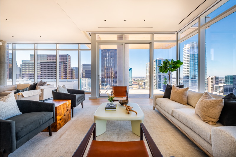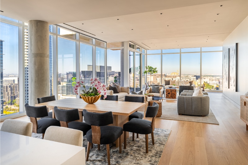 It gets better: Residents experience the beauty of floor-to-ceiling views of nearby iconic buildings designed by Pritzker Prize-winning architects, including the Winspear Opera House, Meyerson Symphony Center, and Wyly Theatre.