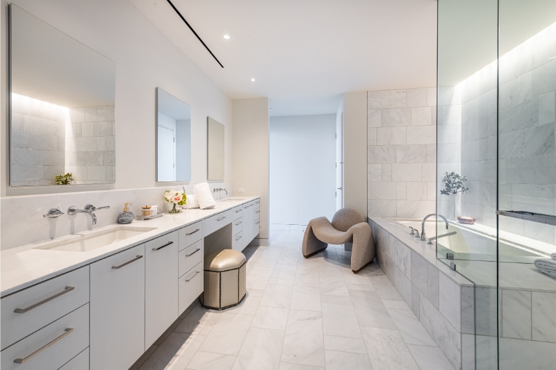 For those who love to cook and entertain, the Masterpiece Collection homes come with sleek Bulthaup kitchen systems and handsome Gaggenau appliances — just the thing for soufflés and sautés. Most homes also feature a spacious butler pantry, ideal for residents needing ample storage. If the kitchen is not your happy place, take advantage of the proximity to HALL Arts Hotel’s restaurant, Ellie’s Restaurant and Lounge, which provides room service to residents. Homeowners also receive perks and direct access to all the hotel’s amenities.